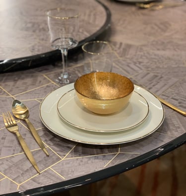 The open fire will accompany your morning meals, as well as lavish evening dining events. All of our tableware is locally sourced.